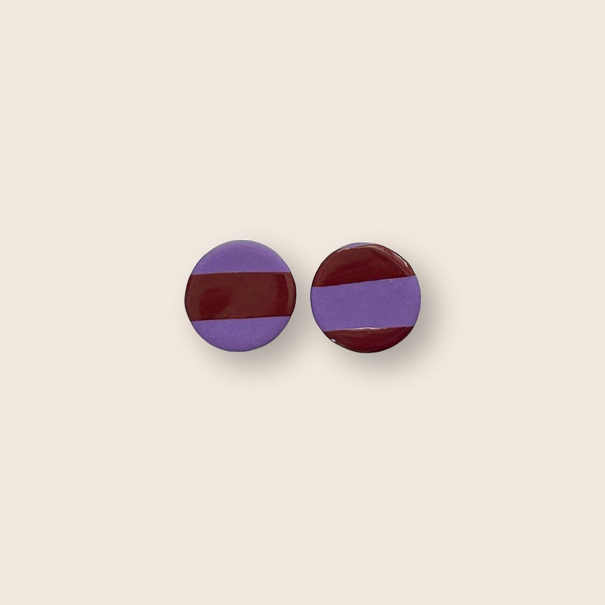 Elegáns gombszerű fülbevaló vastag csíkokkal, melyek felülete hol fényes, hol matt.